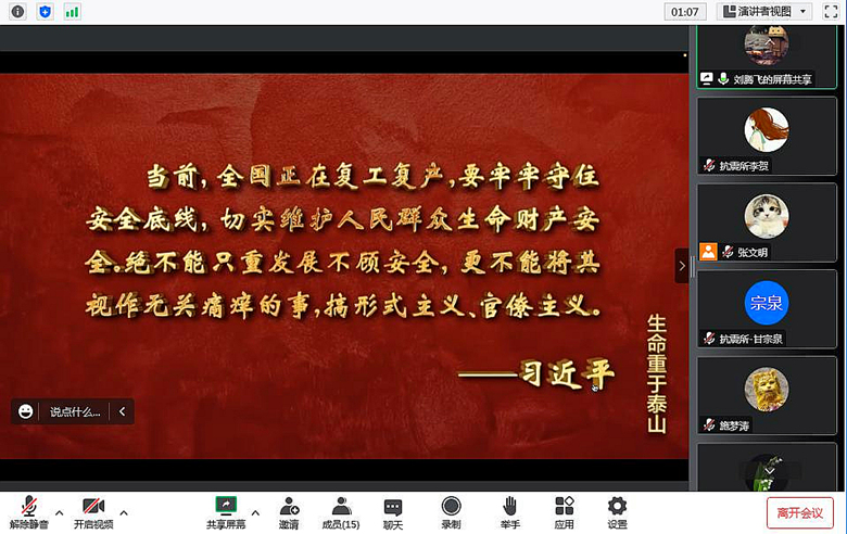 為深入學(xué)習(xí)貫徹習(xí)近平總書記關(guān)于安全生產(chǎn)的重要論述和重要指示精神,統(tǒng)籌發(fā)展和安全,切實加強(qiáng)職工安全生產(chǎn)意識,12月23日上午抗震所組織本部門職工通過線上方式集中學(xué)習(xí)了電視專題片《安全重于泰山》。